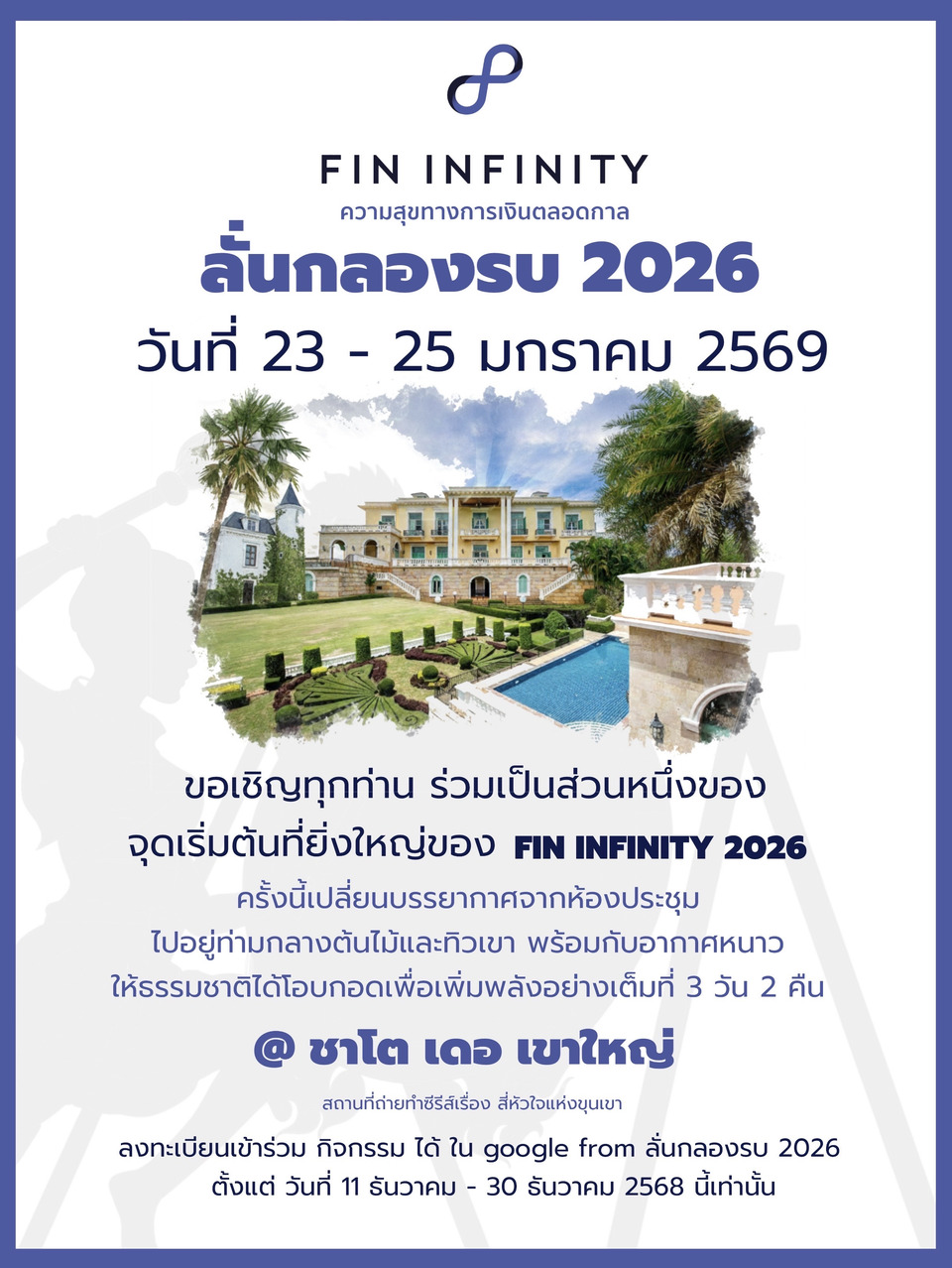 ถัดมาไม่กี่วัน อีกงานโดยโต้โผใหญ่"ชาณุรัช วงศ์จันทร์มณี"ประธานสโมสรกิจกรรมพิเศษได้รับมอบหมายจาก"ศิริภรณ์ พุทธรักษ์" CEO FIN Infinity และเจ้าของสำนักงานตัวแทนประกันชีวิต AIA เมืองทองธานี เป็นแม่งานเตรียมจัดประชุมวางแผนประจำปีระดับตัวแทน "ลั่นกลองรบ" Year Plan 2026รวม 112 หน่วย 220 คน บุกเขาใหญ่รับลมหนาวณ ชาโต เดอ เขาใหญ่วันที่ 23-25 มกราคม พ.ศ. 2569 ดังสโลแกน FIN Infinity ความสุขทางการเงินตลอดกาล