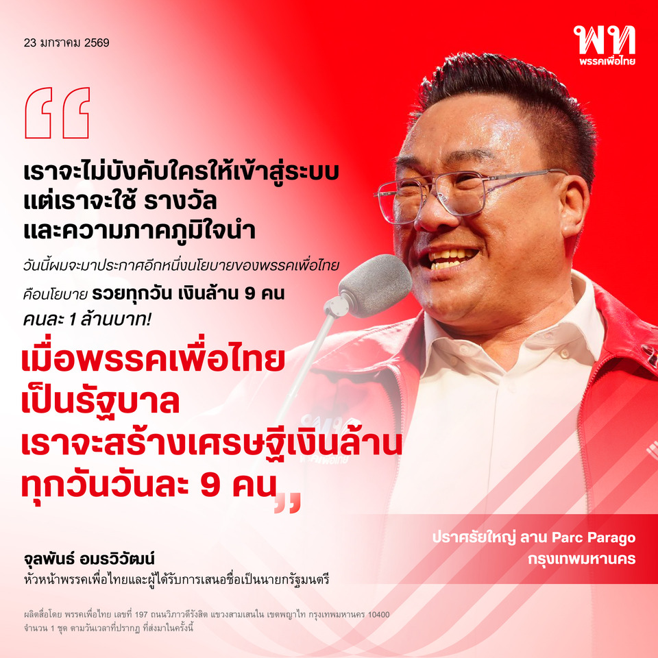 “ หลายวันที่ผ่านมาผมเจอคุณจุลพันธุ์อยู่หลายเวที น้องเขาบอกหลายครั้งว่าจะประกาศนโยบายทีเด็ดออกมาคืนนี้ที่เวทีพารากอน ผมก็อุตส่าห์ตั้งใจรอดูว่าจะเปิดตัวนโยบายอะไรที่จะเป็นประโยชน์ต่อบ้านเมือง แต่สุดท้ายก็คือการเอาเงินภาษีมาแจกอีกเช่นเคย และแจกแบบน่าเกลียดมากเพราะผลทางเศรษฐกิจและสังคมอย่างเก่งเป็นศูนย์” (24 ม.ค.69)