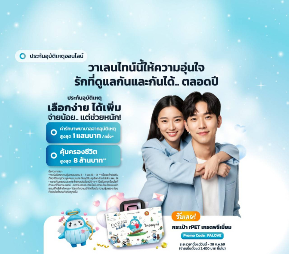 ขณะที่ค่ายทิพยประกันภัยจัดโปรโมชันต้อนรับวาเลนไทน์ช่วง ก.พ. 2569 มอบความคุ้มครองสุดพิเศษสำหรับคนมีคู่และคนโสด ทั้งส่วนลดเบี้ยประกันภัยรถยนต์สูงสุด 15% และรับ e-voucher บัตรเติมน้ำมันสูงสุด 4,000 บาท เมื่อซื้อประกันภัยชั้น 1 (TIP Premium/Premium Plus/Lady) ผ่านเว็บไซต์ TIPINSURE ตั้งแต่วันที่ 1 ก.พ. - 31 มี.ค. 69