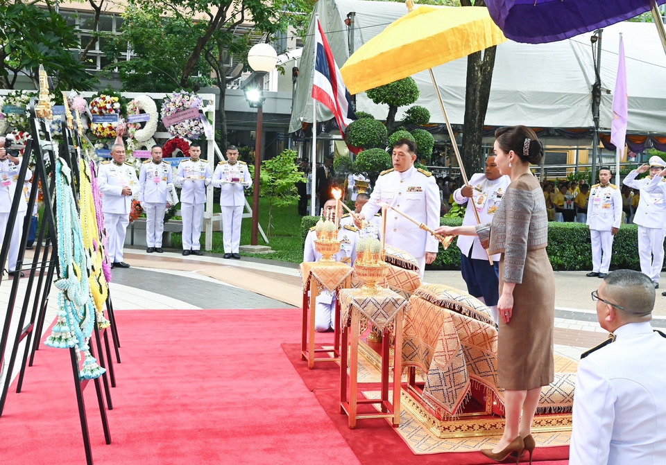 จากนั้น เสด็จพระราชดำเนินไปยังพระราชานุสาวรีย์สมเด็จพระมหิตลาธิเบศร อดุลยเดชวิกรม พระบรมราชชนก พระบาทสมเด็จพระเจ้าอยู่หัว ทรงวางพวงมาลาส่วนพระองค์ ทรงจุดธูปเทียนเครื่องทองน้อยถวายราชสักการะ ทรงกราบ สมเด็จพระนางเจ้า ฯ พระบรมราชินี ทรงวางพวงมาลาของสมเด็จพระนางเจ้าสิริกิติ์ พระบรมราชินีนาถ พระบรมราชชนนีพันปีหลวง และพวงมาลาส่วนพระองค์ ทรงจุดธูปเทียนเครื่องทองน้อยถวายราชสักการะ ทรงกราบ เสร็จแล้ว เสด็จพระราชดำเนินไปยังศาลาศิริราช 100 ปี ถวายราชสักการะพระราชานุสาวรีย์สมเด็จพระศรีนครินทราบรมราชชนนี พระบรมรูปพระบาทสมเด็จพระปรเมนทรมหาอานันทมหิดล พระอัฐมรามาธิบดินทร และพระบรมรูป พระบาทสมเด็จพระบรมชนกาธิเบศร มหาภูมิพลอดุลยเดชมหาราช บรมนาถบพิตร พระบาทสมเด็จพระเจ้าอยู่หัว ทรงวางพุ่มดอกไม้ส่วนพระองค์ ทรงวางพวงมาลัย ทรงจุดธูปเทียนเครื่องทองน้อยถวายราชสักการะ ทรงกราบ สมเด็จพระนางเจ้า ฯ พระบรมราชินี ทรงวางพุ่มดอกไม้ของสมเด็จพระนางเจ้าสิริกิติ์ พระบรมราชินีนาถ พระบรมราชชนนีพันปีหลวง และพุ่มดอกไม้ส่วนพระองค์ ทรงวางพวงมาลัย ทรงจุดธูปเทียนเครื่องทองน้อยถวายราชสักการะ ทรงกราบ