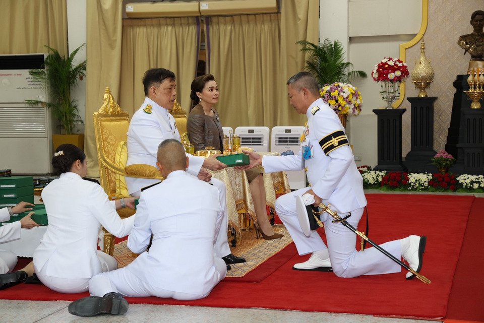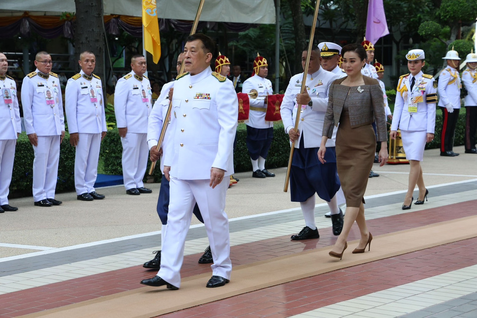 เมื่อเสด็จพระราชดำเนินถึง ศาสตราจารย์ นายแพทย์อภิชาติ อัศวมงคลกุล คณบดีคณะแพทยศาสตร์ ศิริราชพยาบาล ศาสตราจารย์ นายแพทย์ปิยะมิตร ศรีธรา อธิการบดีมหาวิทยาลัยมหิดล ศาสตราจารย์ นายแพทย์ยงยุทธ ศิริวัฒนอักษร ผู้อำนวยการโรงพยาบาลศิริราช พลเรือเอก จิรพล ว่องวิทย์ ผู้บัญชาการทหารเรือ และผู้บริหารคณะแพทยศาสตร์ศิริราชพยาบาล เฝ้าทูลละอองธุลีพระบาทรับเสด็จ