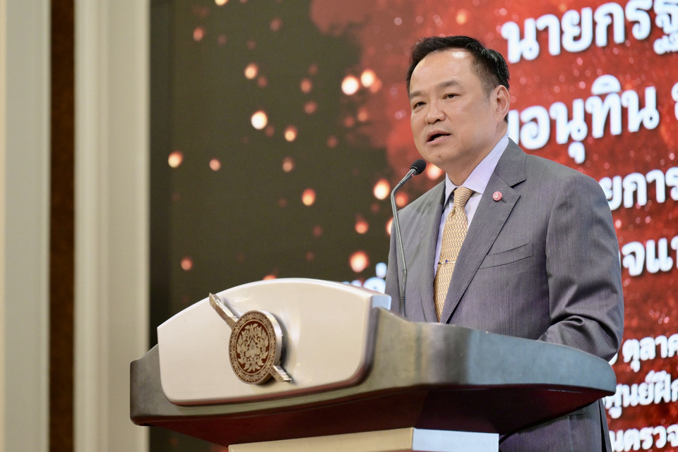 นายอนุทิน กล่าวต่อว่า สิ่งที่ตนยังต้องการให้ผู้บัญชาการตำรวจแห่งชาติ และผู้บริหารสำนักงานตำรวจแห่งชาติ ทุกคนได้ให้ความร่วมมืออย่างเต็มที่ และทุ่มเททุกสรรพกำลังที่มีอยู่ คือเรื่องยาเสพติด ตนไม่อยากให้หัวหน้ารัฐบาลท่านไหนมาแล้วก็มาพูดเรื่องนี้กับท่านว่า ยาเสพติดถือว่าเป็นภัยลำดับแรกที่สำคัญที่สุด จะต้องมีหมู่บ้านสีขาว มีการเอ็กซเรย์ แต่อยากให้หัวหน้ารัฐบาลไม่ว่าท่านไหนที่จะมาต่อจากตน เมื่อมาพบเรื่องนี้กับผู้บัญชาการตำรวจแห่งชาติ ท่านสามารถลุกขึ้นยืนตอบแทนตำรวจทุกคนได้ ว่าได้จัดการเป็นที่เรียบร้อยแล้ว