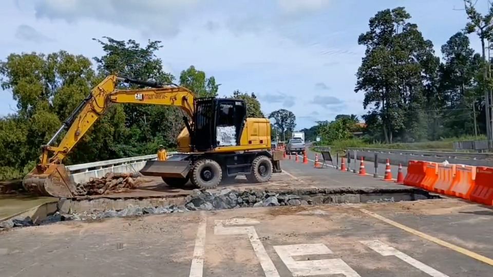 วันที่ 1ตุลาคม 68 ผู้สื่อข่าวรายงานถึงสถานการณ์น้ำท่วมล่าสุด จากฤทธิ์พายุ “บัวลอย”ที่ได้ส่งผลกระทบอย่างหนักในพื้นที่ชายแดนไทย–กัมพูชา ในหลายพื้นที่ มวลน้ำจากเทือกเขาพนมดงรัก จากพื้นที่ ต.ตาตุมและ ต.เทพรักษา อ.สังขะฯได้พัดถนนขาดหลายแห่ง โดยเฉพาะสะพานบนถนนสายหลักเชื่อมระหว่างหมู่บ้านขนาดมอญ ต.ตาตุม อ.สังขะ จ.สุรินทร์ ที่ถูกมวลน้ำไหลเชี่ยวกัดเซาะจนคอสะพานชำรุดเสียหาย ทำให้การสัญจรลำบาก รถใหญ่ไม่สามารถผ่านได้ จนท.จากแขวงการทางสุรินทร์ ได้ลงพื้นที่ซ่อมแซมคอสะพานเพื่อให้รถยนต์สามารถสัญจรผ่านได้ ขณะที่พื้นที่อื่นๆองค์กรปกครองส่วนท้องถิ่นได้ลงพื้นที่สำรวจความเสียหายเพื่อช่วยเหลือประชาชนและซ่อมแซมถนนจุดที่ชำรุดแล้ว หลังจากปริมาณน้ำ ในพื้นที่ตำบลต้นน้ำอาทิ ต.ตาตุม,ต.เทพรักษา และพื้นที่ อ.สังขะ เริ่มลดลงแล้วตามลำดับ