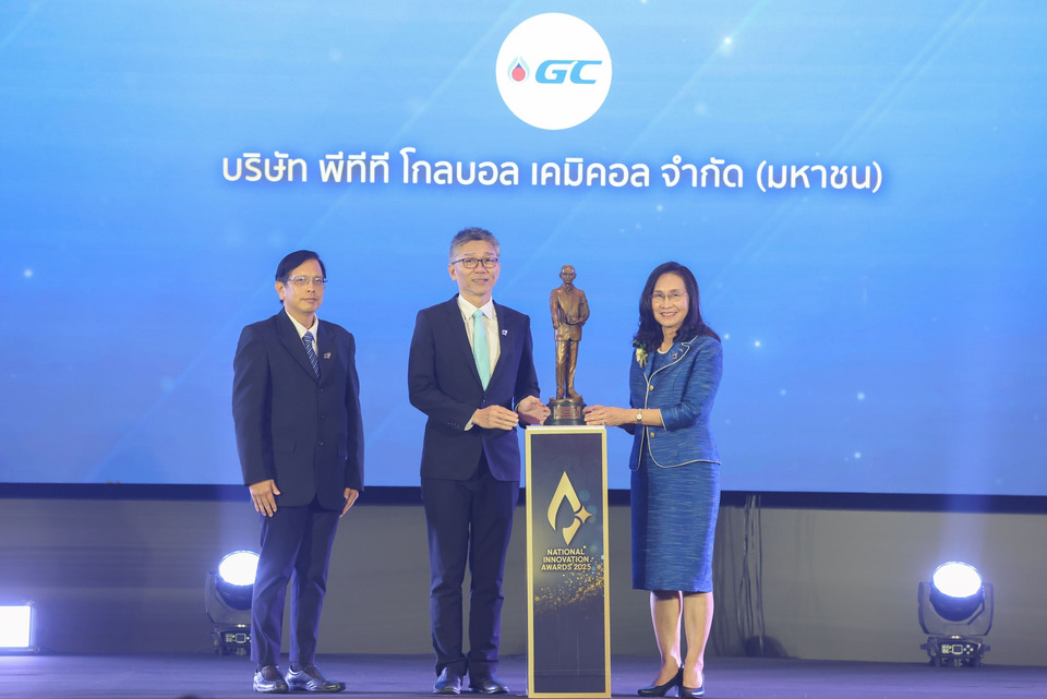 1 ตุลาคม 2568 กรุงเทพมหานคร: บริษัท พีทีที โกลบอล เคมิคอล จำกัด (มหาชน) หรือ GC ตอกย้ำจุดยืนองค์กรแห่งนวัตกรรมที่ขับเคลื่อนความยั่งยืนในทุกมิติ คว้า 3 รางวัลนวัตกรรมแห่งชาติ ประจำปี 2568 จากสำนักงานนวัตกรรมแห่งชาติ (องค์การมหาชน) โดยได้รับรางวัลครอบคลุมทั้งด้านองค์กร สังคมและสิ่งแวดล้อม และเศรษฐกิจ สะท้อนบทบาทของ GC ในการพัฒนานวัตกรรมที่ใช้ได้จริง สร้างผลลัพธ์ที่จับต้องได้ เปลี่ยนจากไอเดียให้เป็นความยั่งยืนอย่างเป็นรูปธรรม ภายใต้แนวคิด “Innovation is Everyone’s Business” ในงานวันนวัตกรรมแห่งชาติประจำปี 2568 จัดโดยสำนักงานนวัตกรรมแห่งชาติ ณ ห้องนภาลัย โรงแรมดุสิตธานี