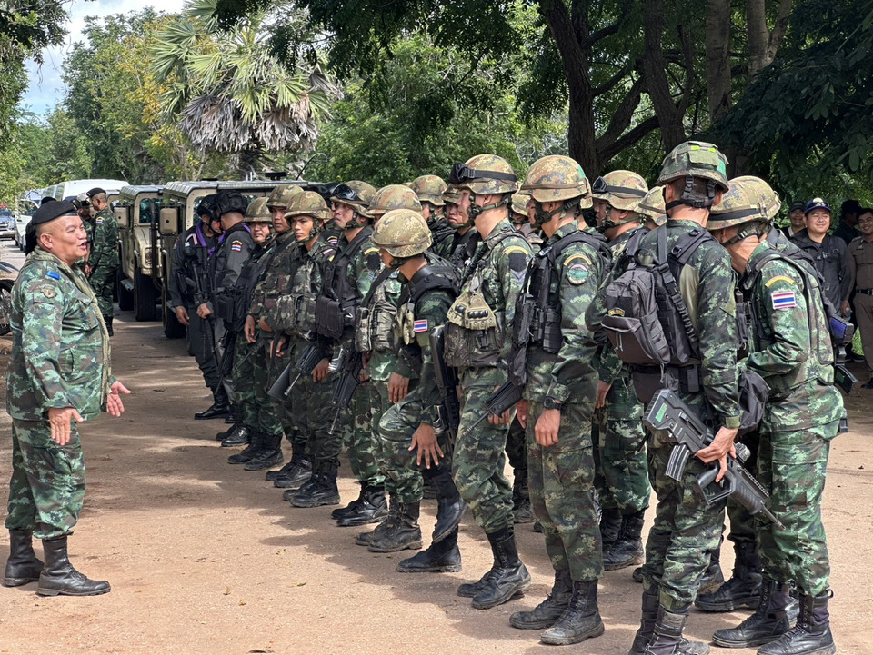 วันที่ 2 ต.ค.68 เวลา 13.30 น.พลโท วรยส เหลืองสุวรรณ แม่ทัพภาคที่ 1/ ผู้บัญชาการศูนย์ปฏิบัติการกองทัพภาคที่ 1 เดินทางมาตรวจเยี่ยมการปฎิบัติงานของกองกำลังป้องกันชายแดนในพื้นที่กองกำลังบูรพาฯโดยจุดแรกได้ลงพื้นที่ จุดตรวจ 34 บ้านหนองหญ้าแก้ว หมู่ที่ 3 ตำบลโนนหมากมุ่น อำเภอโคกสูง จังหวัดสระแก้ว ซึ่งอยู่ตรงข้ามบ้านเปรยจัน อำเภอโอโจวโร จังหวัดบันเตียเมียนเจย ประเทศกัมพูชา ซึ่งเป็นพื้นที่ชาวกัมพูชาบุกรุกเข้ามาอาศัยอยู่ในดินแดนของไทย โดยมี พลตรี เบญพล เดชาติวงษ์ ณ อยุธยา ผู้บัญชาการกองกำลังบูรพาฯ พันเอก ชัยณรงค์ กาสี ผู้บังคัญหน่วยเฉพาะกิจที่ 12 และเจ้าหน้าที่ฝ่ายปกครองให้การต้อนรับ พร้อมพาเข้าชมพื้นที่อย่างใกล้ชิด ซึ่งบริเวณบ้านหนองหญ้าแก้ว มีมวลชนชาวกัมพูชาเป็นพระสงฆ์รวมตัวกันอยู่ ประมาณ 20 รูป โดยยืนอยู่บริเวณรั้วป้องกันตัวเองอย่างสงบ ไม่มีการยั่วยุและส่งสัญลักษณ์ใด ๆ ทั้งสิ้น ใช้เวลาประมาณ 1 ชั่วโมง ในการลงพื้นที่