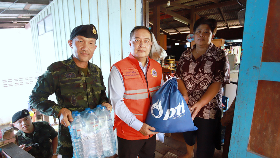 โดยนำถุงยังชีพสิ่งของจำเป็นและยาเวชภัณฑ์ ไปมอบให้กับประชาชนและผู้สูงอายุที่ได้รับความเดือดร้อน ทั้งนี้ยังเดินทางไปมอบถุงยังชีพให้แก่ นางมณี เต่าทอง อายุ 91 ปี ป่วยเป็นโรคเส้นเลือดสมองตีบ และนางสาคูณ ทันการ อายุ 87 ปี เป็นผู้พิการด้านการเคลื่อนไหวและมีโรคความดันสูง ซึ่งทั้ง 2 คน อยู่ในบ้านที่มีน้ำท่วมขังโดยรอบ ซึ่งอำเภอสามโคกได้รับผลกระทบจากอุทกภัย จำนวน 11 ตำบล 31 หมู่บ้าน รวม 2,012 ครัวเรือน