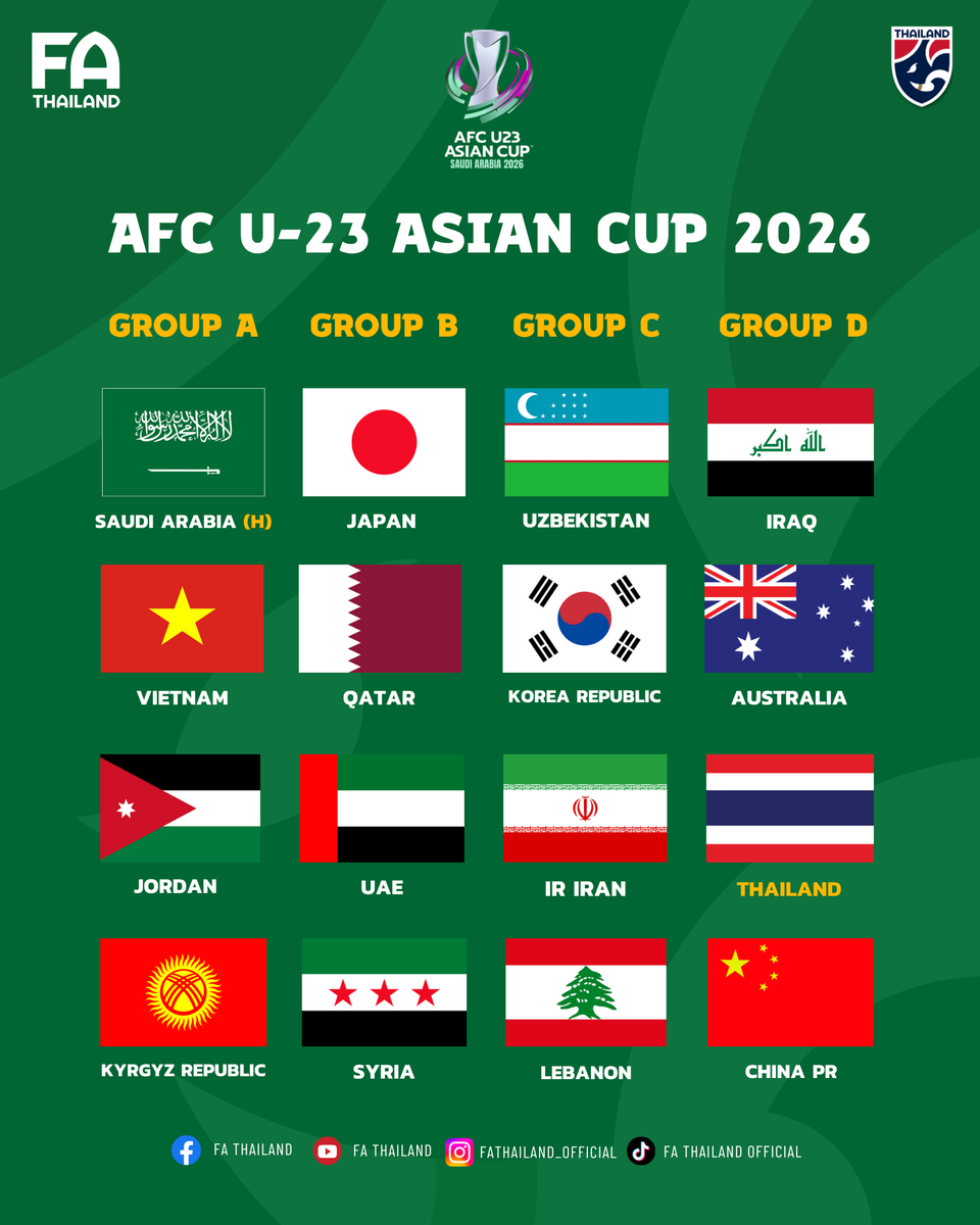 วันที่ 2 ตุลาคม 2568 เวลา 14.00 น. ตามเวลาประเทศไทย ณ สำนักงานใหญ่ AFC กรุงกัวลาลัมเปอร์ ประเทศมาเลเซีย สมาพันธ์ฟุตบอลแห่งเอเชีย หรือ เอเอฟซี จัดพิธีจับสลากศึก AFC U-23 Asian Cup 2026 ขึ้น