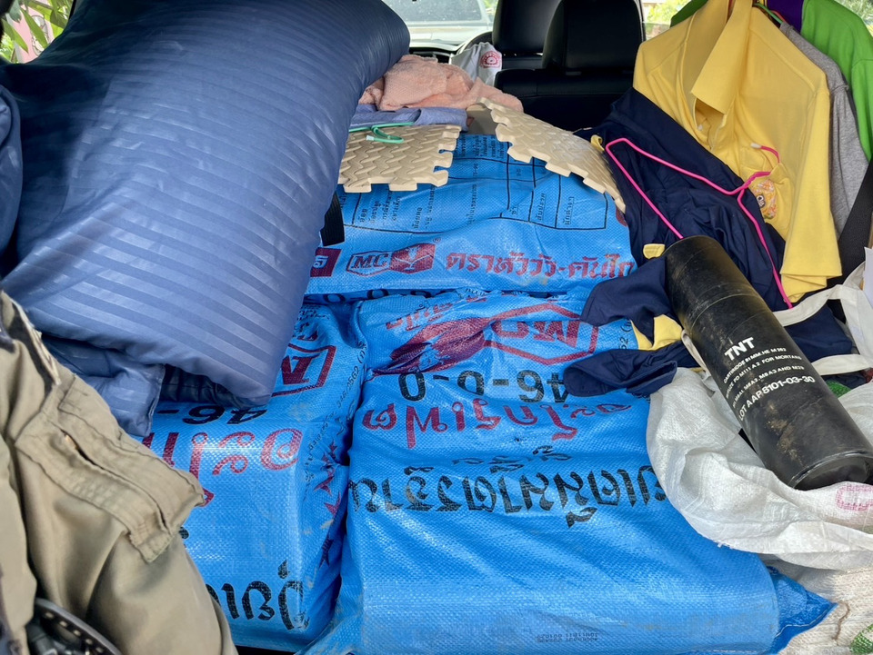 เจ้าหน้าที่ ได้ตรวจค้นภายในรถยนต์พบอาวุธสงคราม ทั้งลูกระเบิดวิธีโค้ง ปืน ค. 81 จำนวนมาก ทั้งตรวจพบเครื่องกระสุน จำนวน 4 รายการ ลูกยิงเครื่องยิงลูกระเบิด ขนาด ค.81 มม. บรรจุอยู่ภายในกระสอบสีฟ้า 4 กระสอบ , จรวดขนาด 40mm (RPG 7) จำนวน บรรจุลงในกระสอบ 4 กระสอบ , ดินส่ง ลูกจรวด บรรจุในกระสอบ 1 ใบ ,และ กระสุนปืนขนาด 5.56 มม. จำนวนมาก บรรจุอยู่ในกระเป๋าผ้า