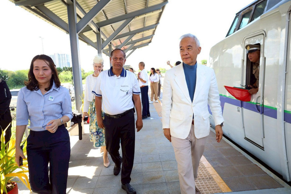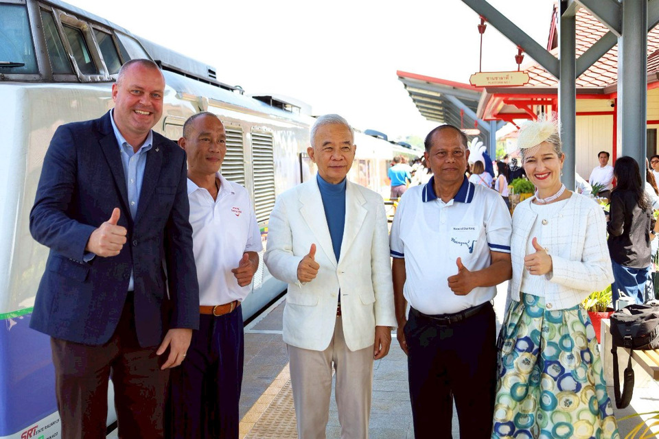 เมื่อวันที่ 3 ต.ค.68 ที่ชานชาลาที่ 1 สถานีรถไฟหนองแก อ.หัวหิน จ.ประจวบฯ นายสิทธิชัย สวัสดิ์แสน ผู้ว่าราชการ จ.ประจวบฯ นายอิษฎา เสาวรส ผอ.ททท.สำนักงานประจวบฯ ให้การต้อนรับ นายสุวัจน์ ลิปตพัลลภ อดีตรองนายกรัฐมนตรี พร้อมด้วยคณะนักท่องเที่ยวชาวไทยและชาวต่างชาติที่เดินทางมาท่องเที่ยวที่ จ.ประจวบฯ ด้วยขบวนรถไฟขบวนพิเศษ KIHA 183 เส้นทางกรุงเทพฯ-หัวหิน โดยมีผู้บริหารและเจ้าหน้าที่จากสวนน้ำและโรงแรม ร่วมให้การต้อนรับนักท่องเที่ยวอย่างอบอุ่น