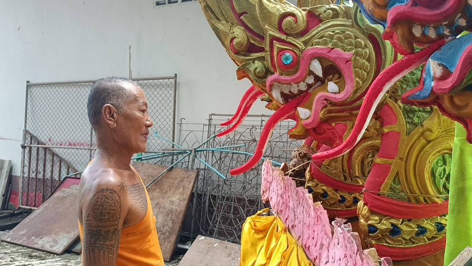 พระเมืองแมน ป.ภโสร พระผู้มีบทบาทร่วมออกแบบและสร้างเรือพระ เผยว่า ปีนี้นับเป็นปีที่ 4 ที่วัดใช้เทียนไขสร้างสรรค์เรือพระทั้งลำ จุดเด่นอยู่ที่ เศียรพญานาค 7 เศียร และ ลำตัวพญานาค ที่มีน้ำหนักหัวละราว 20 กิโลกรัม รวมทั้งลำเรือหนักเกือบ 1 ตัน!