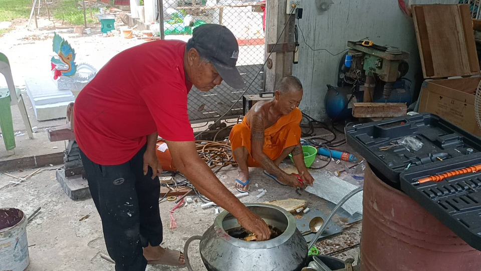 เทียนเก่า ไม่ไร้ค่า! พระสงฆ์และชาวบ้านที่วัด เล่าว่ามีการเก็บรวบรวมเศษเทียนไขจากจุดบูชาพระพุทธรูป เทียนพรรษาเก่าที่หยดลงพื้น หรือเหลือใช้จากปีที่ผ่านมา มาละลายใหม่ด้วยความร้อน แล้วเทใส่ บล็อกลวดลายไทย ที่ออกแบบมาเฉพาะกิจ โดยมี ใยแก้วรองด้านใน เพื่อกันหัก เมื่อเย็นตัว เทียนจะแข็งเป็นชิ้นงานประณีต ดึงออกจากพิมพ์ได้อย่างสวยงาม