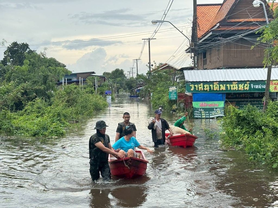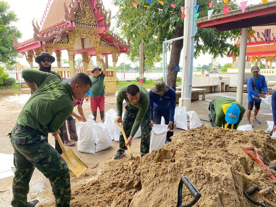ต่อมาเมื่อเย็นวานนี้ (3 ต.ค.68) กระสอบทรายที่กั้นมวลน้ำระหว่างพื้นที่ อ.บางบาล จ.พระนครศรีอยุธยา กับ อ.ป่าโมก จ.อ่างทอง เกิดการชำรุด ทำให้น้ำไหลเข้าท่วมพื้นที่หมู่ที่ 5 ต.โผงเผง หน่วยทหารจึงร่วมกับผู้นำท้องถิ่นและเรือนจำกลางจังหวัดอ่างทอง เร่งนำกระสอบบิ๊กแบ็กมากั้นเสริมเพื่อชะลอมวลน้ำและลดความเสียหาย ขณะนี้อยู่ระหว่างการปฏิบัติอย่างต่อเนื่อง