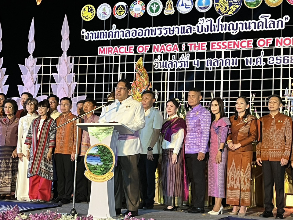 หลังเสร็จสิ้นการรำบูชาพญานาค นายสมภพ สมิตะสิริ ผู้ว่าราชการจังหวัดหนองคาย ได้เป็นประธานเปิดงาน “เทศกาลออกพรรษาและบั้งไฟพญานาคโลก ประจำปี 2568” (Miracle of NAGA : The Essence of Nongkhai 2025) ซึ่งเป็นการเปิดเทศกาลประจำปีอย่างเป็นทางการ