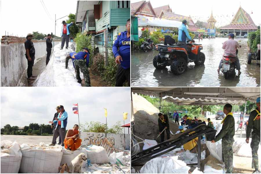 นายกเล็กเมืองอ่างทอง เร่งเสริมแนวกระสอบทราย(บิ๊กแบ็ค) พร้อมตรวจสอบจุดเปราะบางทุกแห่งภายในเขตเทศบาล ด้านระดับน้ำเจ้าพระยาเพิ่มสูงต่อเนื่อง