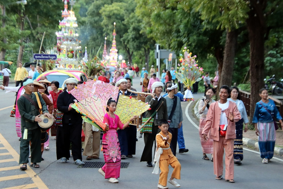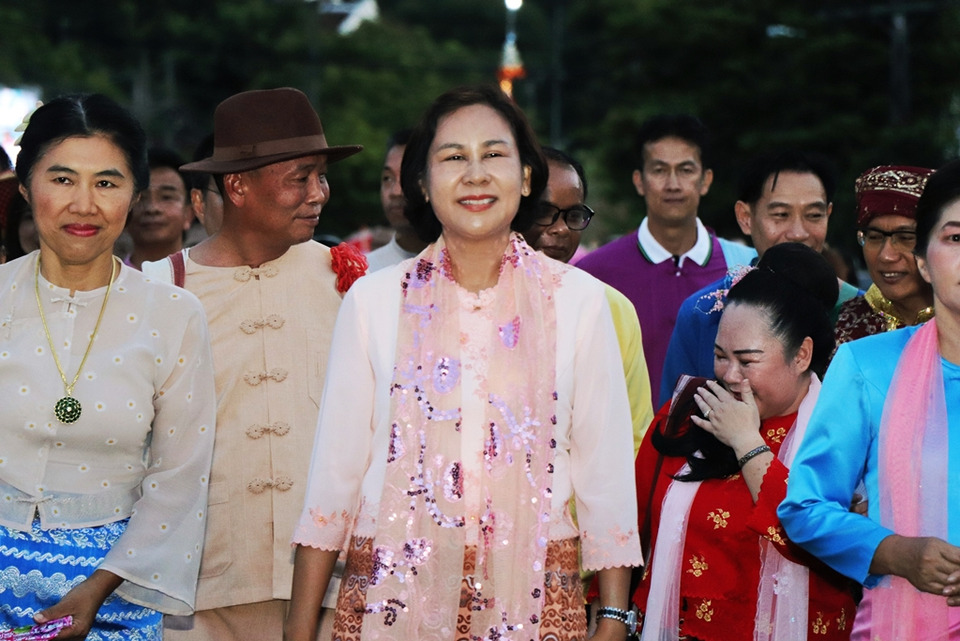 ผู้ว่าฯ แม่ฮ่องสอน นำชาวบ้าน–นักท่องเที่ยว ร่วมขบวนแห่จองพาราอย่างคึกคัก ในงานประเพณีปอยเหลินสิบเอ็ด ซึ่งเป็นประเพณีของชาวไทยใหญ่ในแม่ฮ่องสอน ที่สืบทอดมานานนับร้อยปี