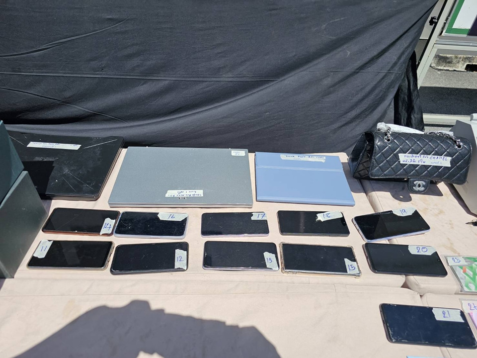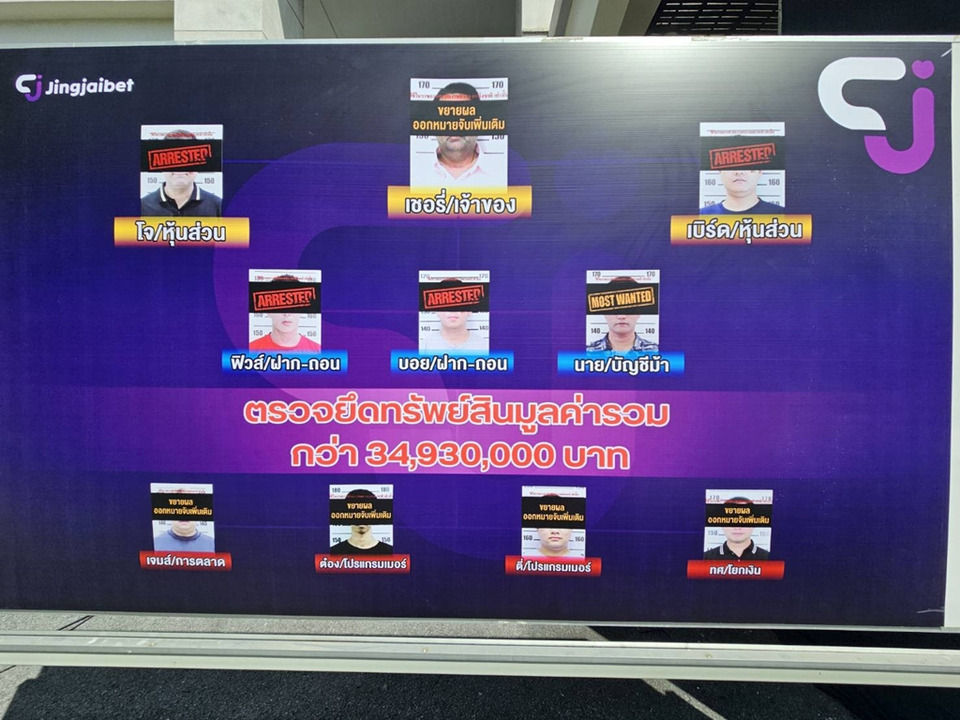 ต่อมาวันที่4 ตุลาคม 2568 ได้ทำการตรวจค้น จำนวน 5 จุด ในพื้นที่จังหวัดสมุทรปราการ 1 จุด จังหวัดขอนแก่น 3 จุด จังหวัดอุบลราชธานี 1 จุด จับกุมผู้ต้องหาตามหมายจับประกอบด้วย 1.นายทัพพ์วริศ 2.นายลาลยี 3.นายทรงศักดิ์ 4.นายชัยจุติ ยังหลบหนี 1 ราย และอยู่ระหว่างสืบสวนขยายผลออกหมายจับ เพิ่มเติมอีกจำนวน 5 ราย พร้อมตรวจยึดทรัพย์สินตาม พรบ.ป้องกันและปราบปรามการฟอกเงินฯ ได้แก่ เงินสด จำนวน 1,176,000 บาท รถยนต์ จำนวน 5 คัน กระเป๋าแบรนด์เนม จำนวน 38 ใบ โทรศัพท์มือถือ จำนวน 18 เครื่อง แท็ปแลต จำนวน 6 เครื่อง โน้ตบุ๊ค จำนวน 4 เครื่อง คอมพิวเตอร์ PC จำนวน 1 เครื่อง สมุดบัญชีเงินฝาก จำนวน 28เล่ม บัตร ATM จำนวน 22 ใบ รวมทรัพย์สินทั้งหมด มูลค่ากว่า 35 ล้านบาท