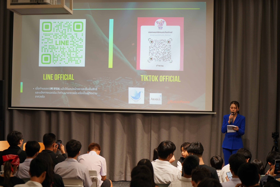 คุณณัฐรัชต์ จิระพลพนิต หัวหน้าโครงการ Siam World Music Festival เปิดเผยว่า งาน “Siam World Music Festival 2025” เทศกาลดนตรีและวัฒนธรรมสุดยิ่งใหญ่ เป็นฟรีคอนเสิร์ต ที่ได้รับการสนับสนุนจาก สำนักงานกองทุนพัฒนาสื่อปลอดภัยและสร้างสรรค์ เพื่อสร้างเวทีที่ผสมผสานพลังของดนตรี ศิลปะ และการท่องเที่ยวเข้าไว้ด้วยกันอย่างกลมกลืน นับได้ว่าเป็นการรวมตัวของศิลปินแนวหน้าของประเทศ ที่จะทำให้งานเทศกาลครั้งนี้เปี่ยมไปด้วยสีสันดนตรีที่หลากหลาย ตั้งแต่ไทย ป๊อปร็อก อินดี้ ไปจนถึงอิเล็กทรอนิกส์ และโชว์ที่ผสมผสานความร่วมสมัย