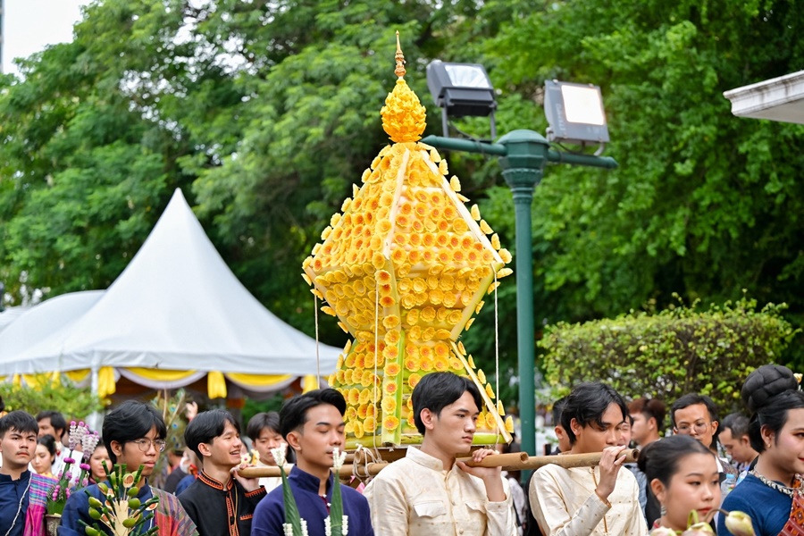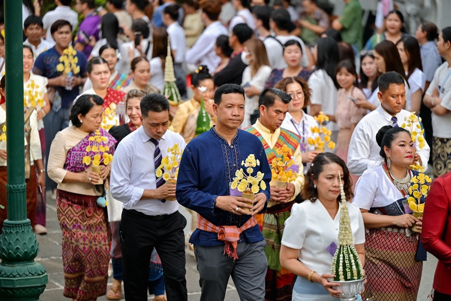 ประเพณี วัฒนธรรม : กรมการศาสนาร่วมสืบสานฮีตถวายปราสาทผึ้ง วัดปทุมวนาราม สืบทอดพระพุทธศาสนาและวัฒนธรรมอีสานล้านช้าง ใจกลางกรุงเทพฯ เนื่องในเทศกาลออกพรรษา
