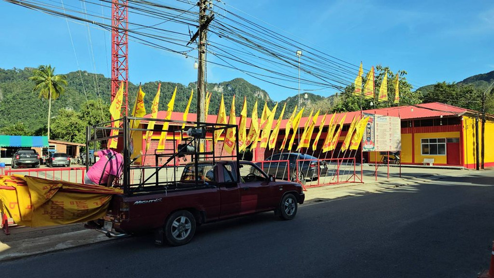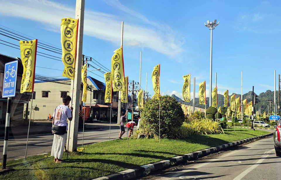 วันที่ 6 ต.ค.68 ผู้สื่อข่าวรายงานบรรยากาศในช่วงก่อนงานประเพณีถือศีลกินผัก ประจำปี 2568 ของ จ.พังงา ตามบริเวณถนนสายต่างๆ ในเขตตัวเมืองพังงา และตามเส้นทางสายสำคัญๆ ตลอดจนตามเส้นทางต่างๆ ในทุกอำเภอที่มีศาลเจ้าต่างๆ ตั้งอยู่ได้มีการประดับธงตลอดแนวถนน เพื่อเป็นการบอกให้รู้ว่าถึงงานบุญที่สำคัญของ จ.พังงาคืองานประเพณีถือศีลกินผัก