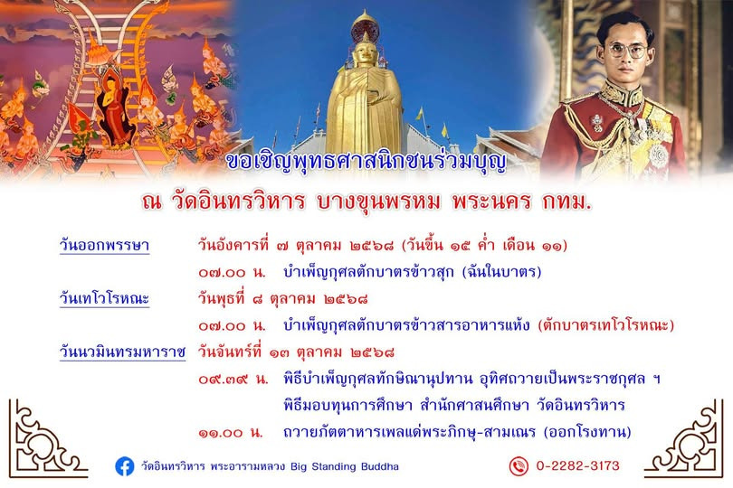 ร่วมทำบุญใหญ่กลางกรุงในวันพุธที่ 8 ตุลาคม 2568 เพื่อความเป็นสิริมงคลแก่ชีวิตและครอบครัว พร้อมเริ่มต้นวันใหม่หลังออกพรรษาด้วยใจอิ่มบุญ