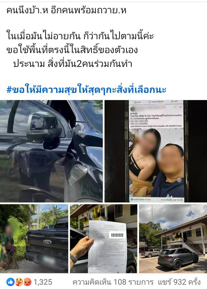 เมื่อวันที่ 6 ต.ค.68 จากกรณีผู้ใช้บัญชีเฟซบุ๊กรายหนึ่ง โพสข้อความระบุว่า “หาทีมตบประจำหลังสวนทุกทีม ให้ตบครั้งละ 30,000 ต้องตบ 10 ทีขึ้นไป ค่าตำรวจ ออกให้ แล้วแต่ทีมไหนเจอก่อนตบก่อน จ่าย 30,000 แล้ว ทีมต่อๆ ไปใครเจอตบได้เลยมารับอีก 30,000 วันเจอกี่ครั้ง ให้ตบทุกครั้งแล้วมารับเงินจากป๋านนท์ โทษฐานแย่งผัวชาว บ้านเค้า ตัวเองก็มีผัวอยู่แล้วยังมาแย่งผัวคนอื่นเค้าอีกหญิง ก็ ชั่วชายก็เลวบัดซบ ขอบพระคุณมากป่านนแก่แล้วไปตบ เอ็งไม่ไหว (ตบแล้วถ่ายรูปมาเบิกเงินค่าปรับออกให้) พ่อผัว จ่ายค่าตบให้ลูกสะใภ้ครับแล้วก็ให้ตบได้ทั่วราชอาณาจักร ใครตบ เสร็จถ่ายรูปมาครับตบได้ทุกวัน จนกว่ามันจะเลิก กับลูกชาย (อยากฝากเจ้าหน้าที่ตำรวจทุกที่ ของอำเภอหลังสวน และตะโก ถ้าเจอรถสี่ประตู ฟอร์ดแร็พเตอร์ ทะเบียนจันทบุรี สีดำ อยากให้จับอาวุธ ข้าวหลามมีอยู่สองกระบอก 11.มม กลับ9 มม ครับ มองแล้วลูกชายไม่ปกติเหมือนโดนวางยา ครับ ขอเจ้าหน้าที่คนไหนสภ. ไหนจับได้ผมในฐานะพ่อครับ ขอเลี้ยง กาแฟ 50,000 ครับคิดว่าสงสารคนแก่ๆครับ” พร้อมกับโพสภาพหญิงลูกจ้างกับลูกชาย