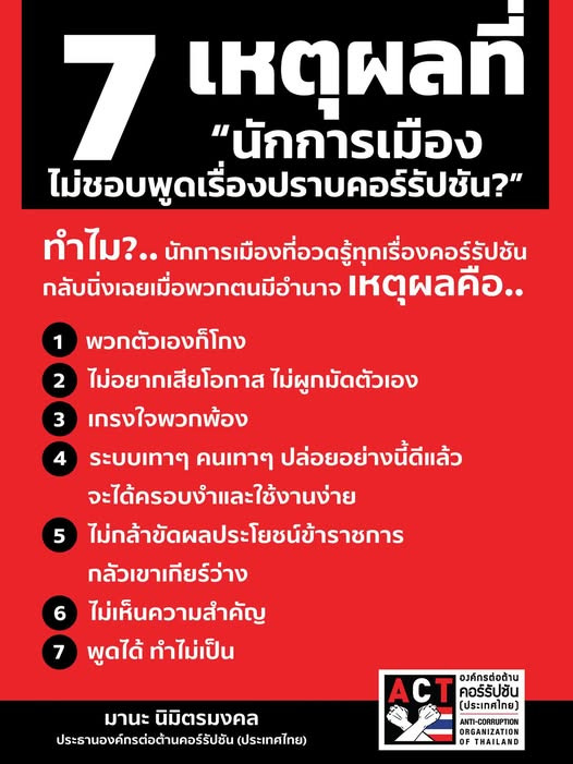 #มานะนิมิตรมงคล #องค์กรต่อต้านคอร์รัปชัน #คอร์รัปชัน #การเมืองไทย #ACT #ข่าวการเมือง #ปราบโกง