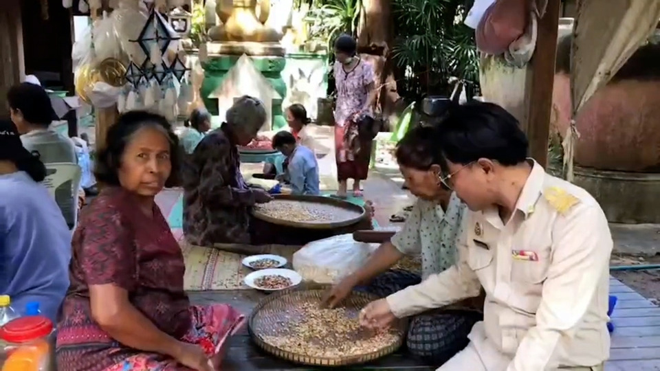 คุณยายเต๊ะ สักดี อายุ 60 ปี กล่าวว่า สถานการณ์ชายแดนไทยกัมพูชา น่ากลัวมาก กลัวเขายิงหนักกว่าที่ผ่านมา แต่ก็ต้องเตรียมเครื่องกวนข้าวทิพย์เอาไว้ก่อน ค่อยว่ากันอีกที
