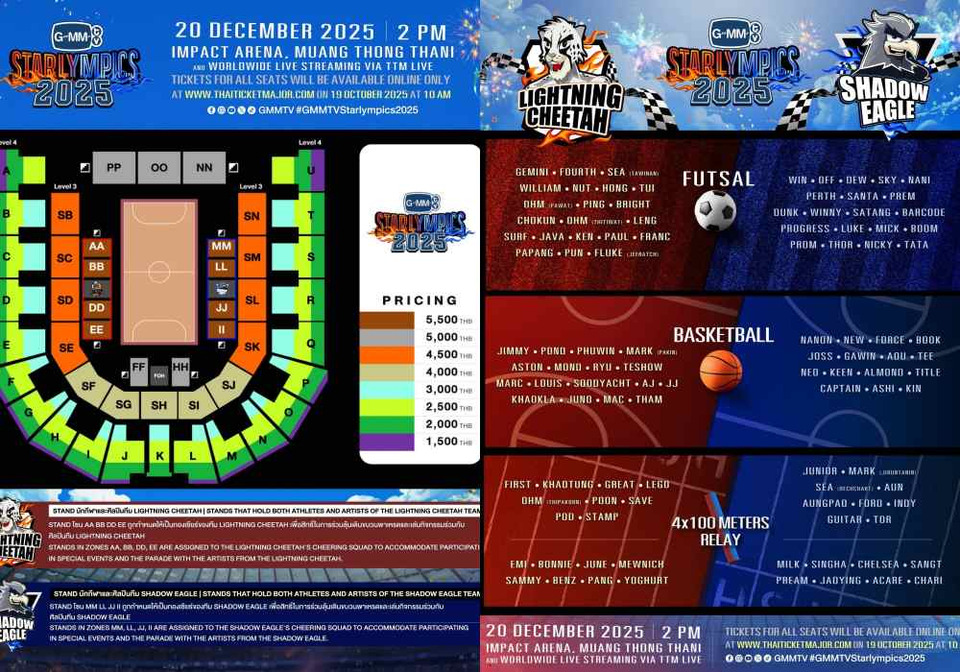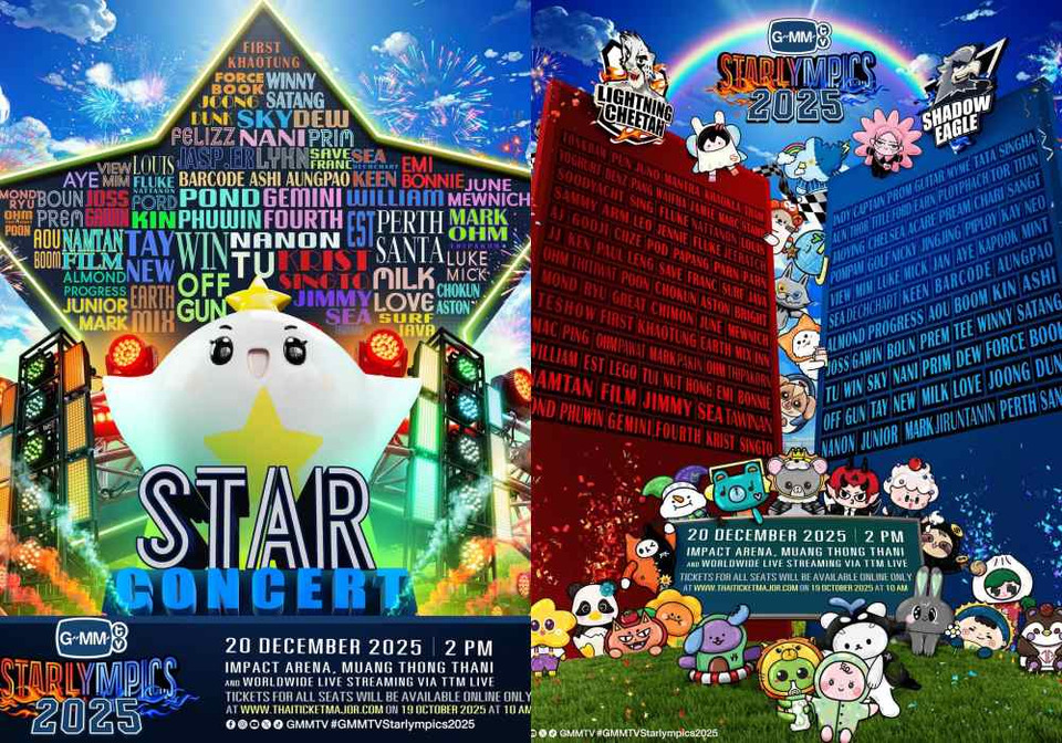 ตอกย้ำความเป็นผู้นำความสนุก “GMMTV”คอนเทนต์โพรไวเดอร์ชั้นนำของเมืองไทย กลับมาอีกครั้ง กับการสร้างปรากฎการณ์ความสนุกสุดยิ่งใหญ่ ในมหกรรมกีฬาแห่งปีที่มีแฟนๆ รอคอยมากที่สุด“GMMTV STARLYMPICS 2025” ซึ่งจัดขึ้นเป็นปีที่ 3แล้ว โดยยกขบวนทัพศิลปิน “GMMTV” มาทั้งค่ายพร้อมด้วยเหล่า “Mascot Fandom Character” ร่วมสร้างสีสัน พบกับการแข่งขันระหว่าง 2 ทีมคือ “ทีม Lightning Cheetah” และ “ทีม Shadow Eagle” ใน 3 กีฬาสุดมันอย่าง ฟุตซอล, บาสเก็ตบอล และวิ่งผลัด และปิดท้ายความสนุกด้วยโชว์สุดเอ็กซ์คลูซีฟ “Star Concert” จากศิลปิน “GMMTV” บนเวทีแสงสีเสียงโปรดักชั่นสุดอลังการ ที่เต็มไปด้วยความสนุกสนาน เสียงหัวเราะ รอยยิ้ม และตำนานบทใหม่สุดจึ้งแบบนับไม่ถ้วน รวมถึงกิจกรรมโมเมนต์ที่แสนพิเศษ ร่วมกับแฟนๆ ที่เตรียมอัดแน่น ให้ได้ฟินฉ่ำตลอดทั้งงานกว่า 6 ชั่วโมงเต็ม เรียกว่าพลาดไม่ได้จริงๆ