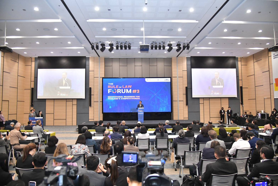โดยนายกฯ กล่าวปาฐกถาพิเศษ ในหัวข้อ “ความพร้อมของกลไกเชิงสถาบันกับความสามารถในการแข่งขันของประเทศ” ตอนหนึ่งว่า ถือเป็นเวทีที่เปิดโอกาสให้พวกเราทุกคน ซึ่งเป็นผู้ที่มีส่วนร่วมในกระบวนการยุติธรรมของชาติได้มาทบทวนร่วมกัน และร่วมกันขับเคลื่อนให้หลักนิติธรรมกลายเป็นวาระแห่งชาติ และเป็นพื้นฐานของความสามารถในการแข่งขันของประเทศในอนาคตอันใกล้ เขาว่าคำว่าหลักนิติธรรม เป็นคำที่ถูกอ้างถึงบ่อยที่สุด และในขณะเดียวกันเป็นคำที่หลายคนใช้ประโยชน์ไปในทางที่ไม่ถูกต้อง โดยอ้างคำว่าหลักนิติธรรม