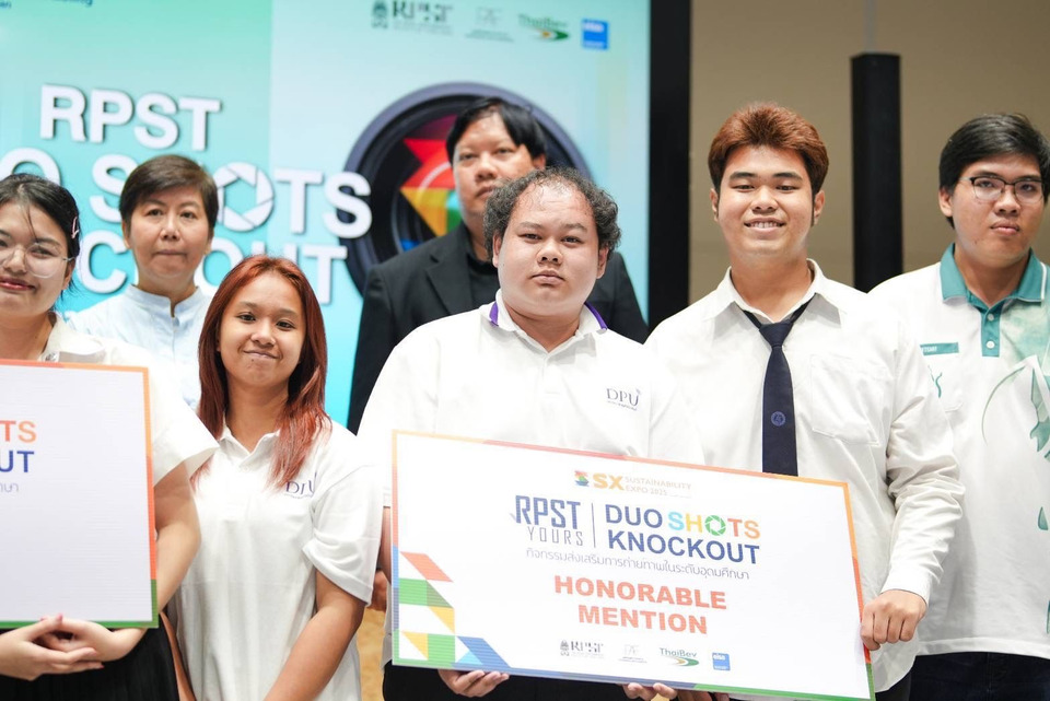 มหาวิทยาลัยธุรกิจบัณฑิตย์ (DPU) ขอแสดงความยินดีกับนักศึกษาที่คว้ารางวัลจากเวที “RPST DUO SHOTS KNOCKOUT การแข่งขันถ่ายภาพแนวคิดสร้างสรรค์ในหัวข้อ “Contrast and Connect” ซึ่งจัดขึ้นภายในงาน SX Sustainability Expo 2025 มหกรรมด้านความยั่งยืนที่ใหญ่ที่สุดในอาเซียน ณ ศูนย์การประชุมแห่งชาติสิริกิติ์ โดยมี สมาคมถ่ายภาพแห่งประเทศไทย ในพระบรมราชูปถัมภ์ เป็นผู้จัดงานหลัก และได้รับการสนับสนุนจาก บริษัท ไทยเบฟเวอเรจ จำกัด (มหาชน)