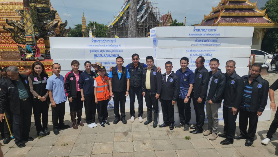เมื่อเวลา 10.30 น. วันที่ 8 ตุลาคม 2568 ที่ วัดน้ำวน ต.บางเดื่อ อ.เมือง จ.ปทุมธานี พลตำรวจโท คำรณวิทย์ ธูปกระจ่าง นายก อบจ.ปทุมธานี พร้อมด้วย นายนพพร ขาวขำ รองนายก อบจ.ปทุมธานี นางสาวพัชร์ชิสา พชิระธารีรัตน์ รองนายก อบจ.ปทุมธานี สมาชิกสภา อบจ.ปทุมธานี หัวหน้าส่วนราชการ นายแพทย์นนท์ จินดาเวช นายแพทย์สาธารณสุขจังหวัดปทุมธานี พม.ปทุมธานี ปภ.ปทุมธานี ท้องถิ่นจังหวัดปทุมธานี ลงพื้นที่ช่วยเหลือประชาชนพร้อมทั้งส่งมอบ แพโฟม ให้ประชาชนริมแม่น้ำเจ้าพระยา เพื่อบรรเทาความเดือดร้อนจากการระบายน้ำของเขื่อนเจ้าพระยาที่มีปริมาณเพิ่มมากขึ้นต่อเนื่องรวมทั้งน้ำทะเลหนุนสูงในช่วงนี้ และฝนที่คาดว่าจะตกจากผลกระทบของ พายุ แมตโม ซึ่งที่บริเวณชุมชนวัดน้ำวน ถือเป็นจุดหนึ่งที่มีพื้นที่ต่ำ ในเขต อ.เมืองปทุมธานี ในชุมชนบางจุดน้ำท่วมสูงกว่า 1 เมตร โดยแต่ละแห่งที่ชาวบ้านมารอรับแพโฟมเป็นจำนวนมาก