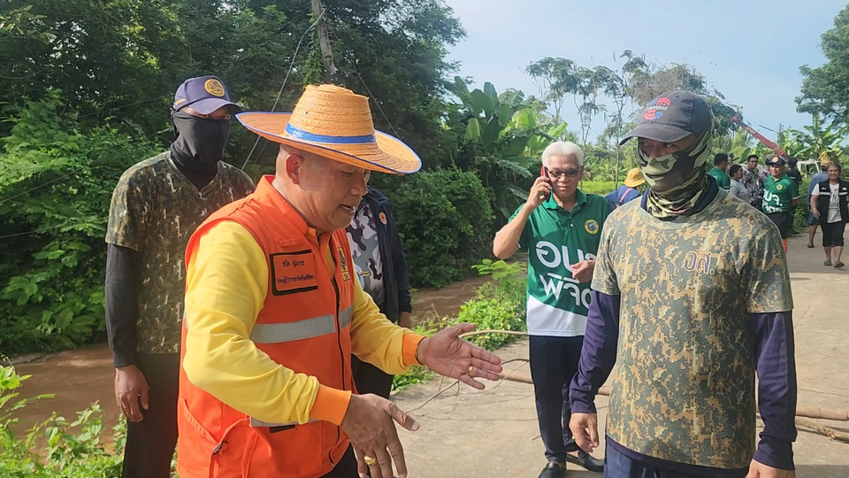 วันที่ 8 ตุลาคม 2568 เมื่อเวลา 16.00 น. นายธนิต ภูมิถาวร รองผู้ว่าราชการจังหวัดพิจิตร และหน่วยงานราชการที่เกี่ยวข้องลงพื้นที่เพื่อติดตามแก้ไขสถานการรณ์น้ำแม่น้ำน่านที่เอ่อล้นตลิ่งและไหลเชี่ยวกราก โดยพบว่าถนนคันดินกั้นน้ำที่เป็นถนนริมแม่น้ำน่านและเป็นเหมือนคันกั้นน้ำที่บริเวณหมู่ 6 ต.ไผ่หลวง อ.ตะพานหิน จ.พิจิตร ถูกน้ำกักเซาะถนนขาดความยาวประมาณ 15 เมตร ทำให้มวลน้ำจำนวนมหาศาลไหลเข้าสู่พื้นที่การเกษตรและบริเวณชุมชนของ หมู่ 6 ต.ไผ่หลวง อ.ตะพานหิน ประมาณ 200 หลังคาเรือน ได้รับผลกระทบ โดย ปภ.พิจิตร ได้ส่งข้อความแจ้งเตือนผ่านระบบสัญญาณโทรศัพท์มือถือ ว่าขอให้ผู้อยู่อาศัยในพื้นที่ดังกล่าวและพื่นที่ใกล้เคียงยกของขึ้นที่สูงจัดเตรียมสิ่งของที่จำเป็น/ยาประจำตัว เคลื่อนย้ายรถไปอยู่ในที่สูง เคลื่อนย้านกลุ่มเปราะบางไปยังที่ปลอดภัย