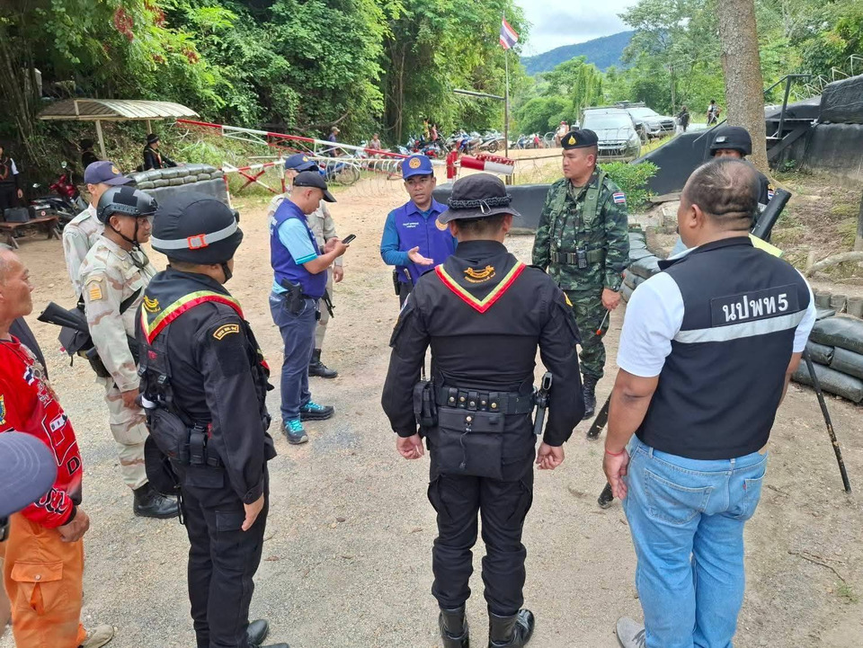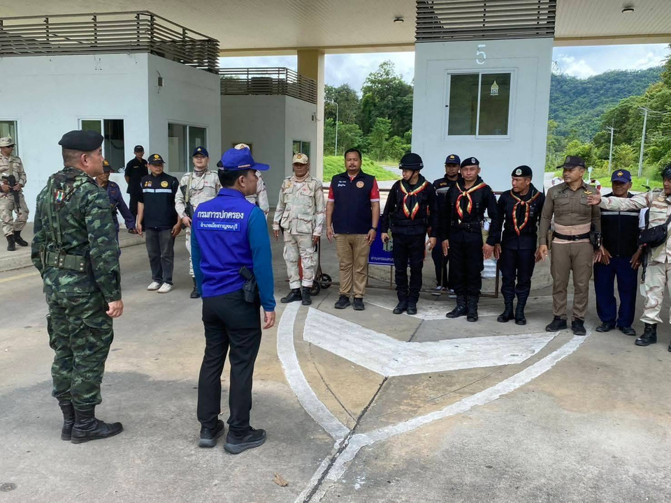 พ.อ.ปิยะเณศร์ ภัทรศาศวัตวงษ์ รองผู้บังคับหน่วยเฉพาะกิจลาดหญ้า พร้อมด้วยนายสมบูรณ์ แผนสมบูรณ์ นายอำเภอเมืองกาญจนบุรี พ.อ.สรรเสริญ ไพรโสภา ผู้บังคับการกรมทหารพรานที่ 14 และหน่วยงานที่เกี่ยวข้อง ลงพื้นที่ตรวจช่องทางพุน้ำร้อน เตรียมแผนรองรับสถานการณ์ พร้อมจัดตั้งจุดตรวจ–จุดสกัดตามแนวชายแดน