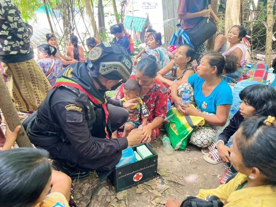 หน่วยเฉพาะกิจลาดหญ้า โดยกองร้อยทหารพรานที่ 1402 ยังได้ให้ความช่วยเหลือตามหลักมนุษยธรรม ปฐมพยาบาลเบื้องต้นแก่ผู้บาดเจ็บชาวเมียนมาบางราย และจัดกำลังลาดตระเวนควบคุมพื้นที่ ป้องกันการรุกล้ำอธิปไตย รวมถึงเตรียมการให้ความช่วยเหลือด้านมนุษยธรรมร่วมกับฝ่ายปกครองและองค์กรท้องถิ่นในพื้นที่ ทั้งนี้ หน่วยทหารยังคงติดตามและประเมินสถานการณ์อย่างใกล้ชิด เพื่อป้องกันไม่ให้เหตุความไม่สงบในฝั่งเมียนมาส่งผลกระทบต่อความมั่นคงของไทย