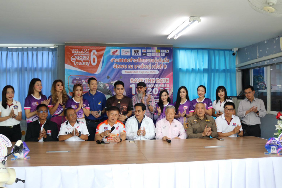 วันที่ 9 ต.ค.68 ที่ สภ.บางใหญ่ จ.นนทบุรี พ.ต.อ.สิรภพ อนุศิริ ผกก.สภ.บางใหญ่ พร้อมด้วยนายสุวพันธุ์ โคตพงค์ ประธานคณะกรรมการตรวจสอบและติดตามการบริหารงานตำรวจ (กต.ตร.) สภ.บางใหญ่ และศิลปินตลกชื่อดัง “ถั่วแระ เชิญยิ้ม” ร่วมแถลงข่าวการจัดกิจกรรม “วิ่งนัดพบ ณ บางใหญ่ ครั้งที่ 6” ซึ่งจะจัดขึ้นในวันอาทิตย์ที่ 16 พฤศจิกายน 2568 บริเวณหน้าตลาดนัด BB บางใหญ่ อำเภอบางใหญ่ จังหวัดนนทบุรี