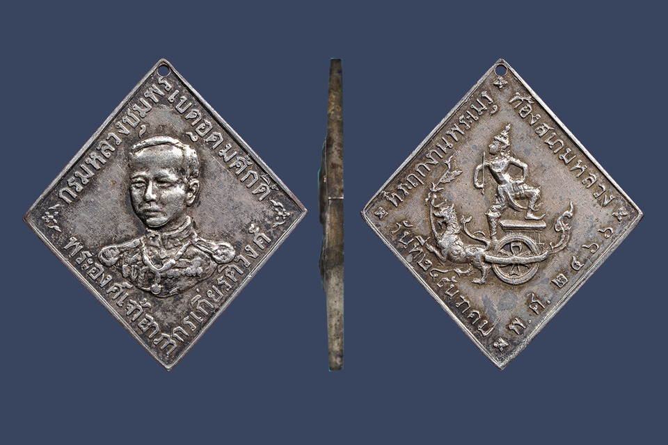 เหรียญที่ระลึก กรมหลวงชุมพรเขตอุดมศักดิ์ เป็นเหรียญรูปสี่เหลี่ยมข้าวหลามตัด หูเจาะในตัว จัดสร้างเป็น เนื้อทองคำ เนื้อเงิน เนื้อทองแดง เนื้อทองแดงผิวไฟ เนื้อทองแดงกะไหล่เงิน และ เนื้อทองแดงกะไหล่ทอง