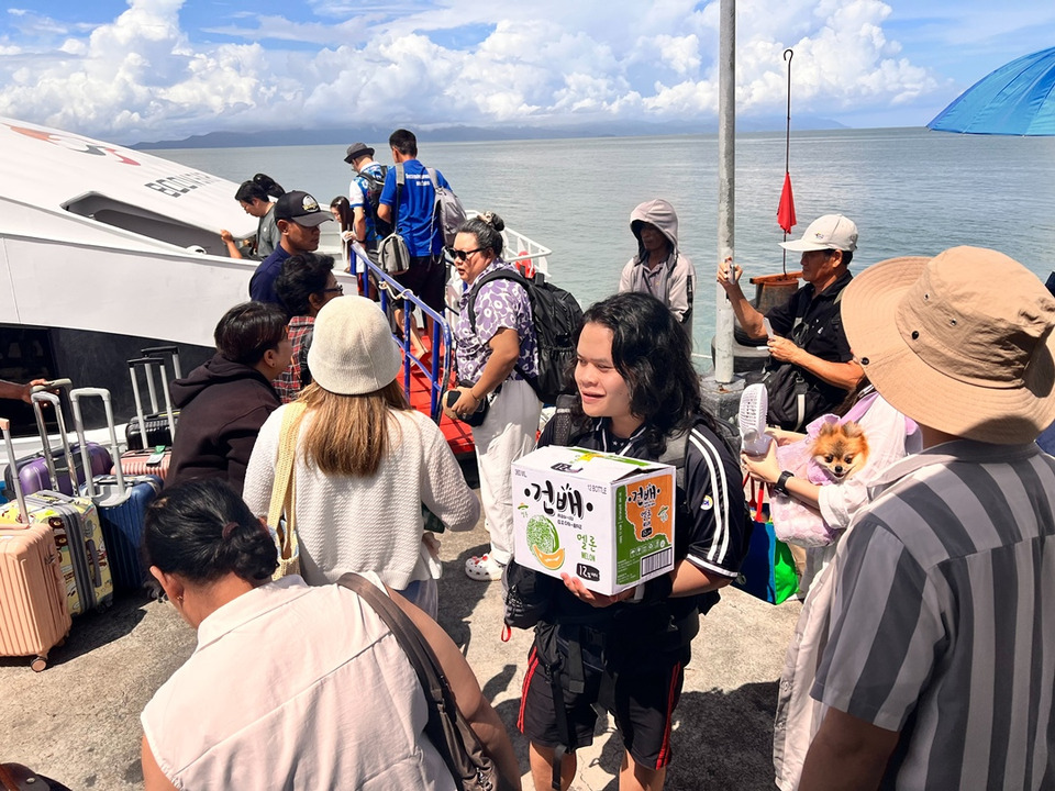 วันที่ 11 ต.ค.68 ผู้สื่อข่าวรายงานบรรยากาศท่องเที่ยววันหยุดยาว 3 วัน ช่วงเดือนตุลาคม 2568 (วันที่ 10-12 ตุลาคม 2568)ซึ่งวันจันทร์เป็นหยุดราชการ(วันนวมินทรมหาราช) ทำให้บริเวณท่าเรือแหลมศอก ต.อ่าวใหญ่ อ.เมือง จ.ตราด มีนัดท่องเที่ยวจำนวนมากเดินทางลงเรือโดยสารของ 3 บริษัท คือ เรือโดยสารบุญศิริ เรือโดยสารเสือดำโก และเรือโดยสารเกาะกูดเอกเพรส ซึ่งเริ่มเดินทางไปเกาะกูดตั้งแต่เวลา 09.46 น. และไปเกาะหมากในเวลา 10.30 น. และในเวลา 11.00 น. และในเวลา 12.30 น. ซึ่งในแต่ลำมีนักท่องเที่ยวทุกลำ ซึ่งในครึ่งเช้ามีนักท่องเที่ยวกว่า 800 คน เดินทางไปแล้ว