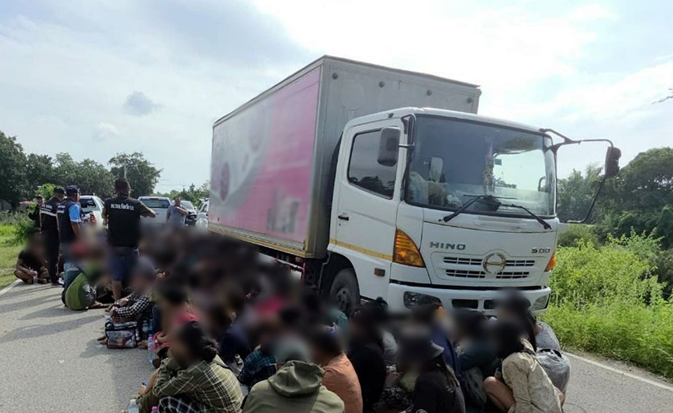 ภารกิจซ้อนแผนสกัดจับแรงงานต่างด้าวครั้งใหญ่กลางเมืองกาญจน์! ตำรวจทางหลวงร่วมฝ่ายปกครองจังหวัดกาญจนบุรี ซุ่มติดตามรถบรรทุก 6 ล้อ ตู้ทึบไร้ป้ายทะเบียน ก่อนเข้าขวางจับกลางเมือง ท่ามกลางเหตุการณ์สุดระทึก เมื่อเปิดประตูท้ายรถถึงกับตะลึง พบแรงงานเมียนมาทั้งชายหญิงอัดแน่นรวม 108 คน เหมือน “ปลากระป๋องมีชีวิต” หวังเดินทางไปทำงานในจังหวัดชายฝั่งและประเทศมาเลเซีย