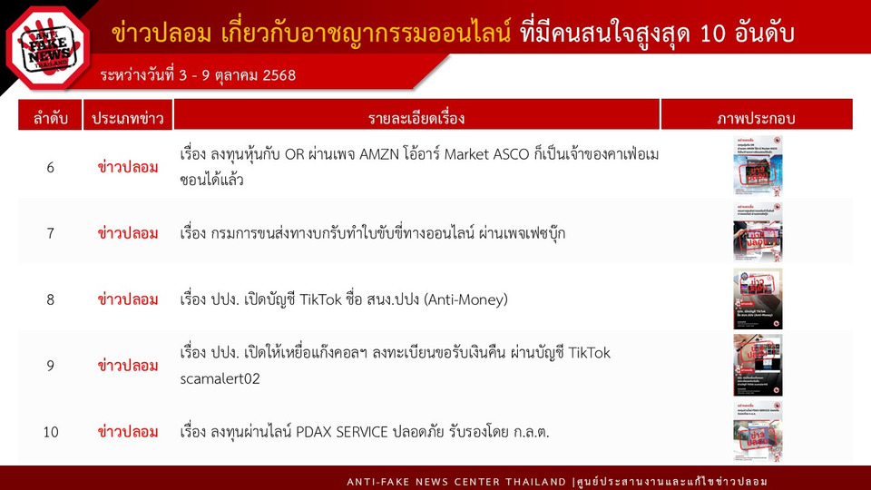 อันดับที่ 5 : เรื่อง ปปง. เปิดให้ผู้เสียหายจากแก๊งคอลเซ็นเตอร์ ติดต่อขอรับเงินคืนผ่านเพจ Stop the incident