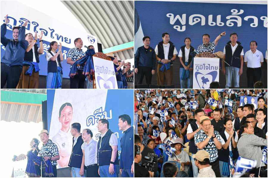 วันที่ 12 ต.ค.68 ที่จ.กาญจบุรี นายอนุทิน ชาญวีรกูล นายกรัฐมนตรีและรัฐมนตรีว่าการกระทรวงมหาดไทย ในฐานะหัวหน้าพรรคภูมิใจไทย พร้อมแกนนำพรรค ประกอบด้วย นายศักดา วิเชียรศิลป์ รัฐมนตรีช่วยว่าการกระทรวงมหาดไทย นายภราดร ปริศนานันทกุล รัฐมนตรีประจำสำนักนายกรัฐมนตรี นายนภินทร ศรีสรรพางค์ รัฐมนตรีประจำสำนักนายกรัฐมนตรี พล.ท.อดุลย์ บุญธรรมเจริญ รัฐมนตรีช่วยว่าการกระทรวงกลาโหม นายชาดา ไทยเศรษฐ์ สส. อุทัยธานี พรรคภูมิใจไทย ได้เดินทางมาศูนย์จำหน่ายและแสดงสินค้าผลิตภัณฑ์ หนึ่งตำบลหนึ่งผลิตภัณฑ์ (โอท็อป) อ.บ่อพลอย จ.กาญจนบุรี เพื่อพบกับประชาชน และปราศรัยหาเสียงช่วย น.ส.วิสุดา วิเชียรศิลป์ ผู้สมัคร สส. เขต 4 พรรคภูมิใจไทย โดยมีรัฐมนตรี และแกนนำเช่น