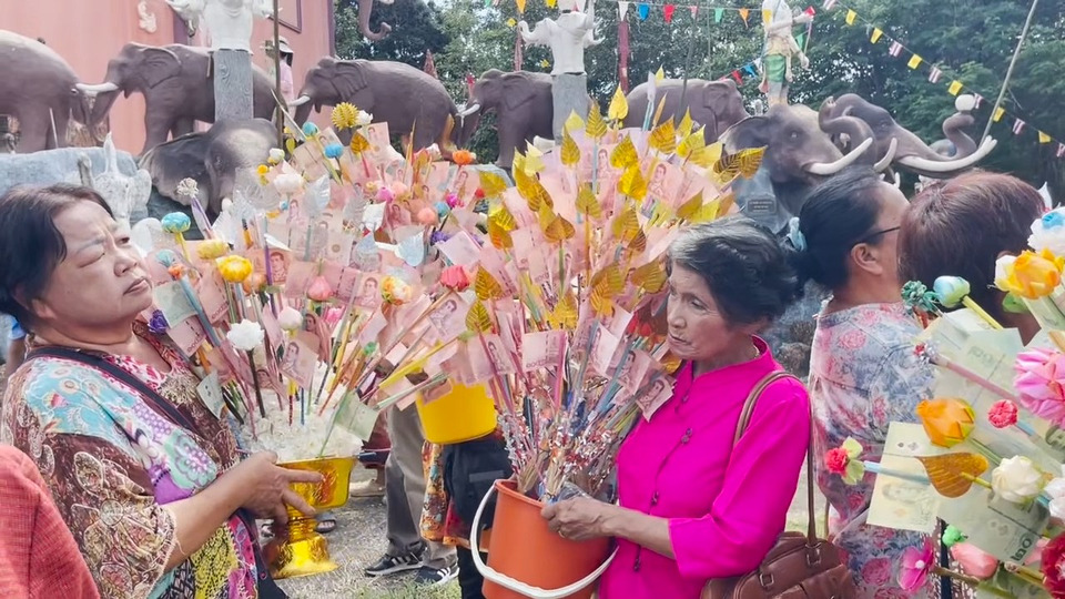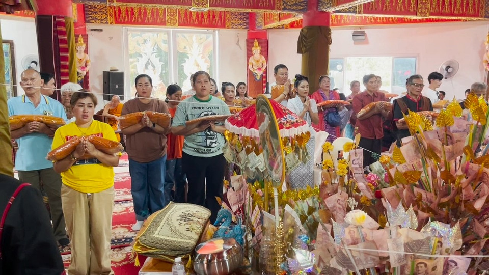 งานบุญทอดกฐินช้างยิ่งใหญ่ แห่ขบวนกว่า 1 กิโลเมตร ก่อนจะประกอบพิธีถวายองค์กฐินสามัคคี..โดยมีพุทธศาสนิกชนหลายร้อยคน ได้นำองค์กฐิน ขึ้นบนหลังช้างจำนวน 100 กว่าเชือก พร้อมด้วยขบวนศิลปะพื้นบ้าน จัดตกแต่งคชปักษาสัตว์ในตำนานที่เป็นความเชื่อเป็นสัตว์มงคล มีหัวเป็นช้างหางเป็นนก ด้วยผ้าไหมทั้งคันอย่างสวยงาม