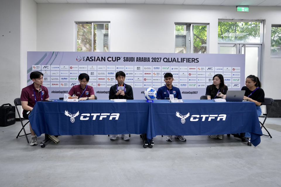 วันที่ 13 ตุลาคม 2568 ห้องแถลงข่าว ไทเป มูนิซิปัล สเตเดียม จัดแถลงข่าวความพร้อมก่อนการแข่งขันฟุตบอล เอเชียน คัพ 2027 รอบคัดเลือก กลุ่มดี นัดที่สี่ ระหว่าง ทีมชาติไชนีส ไทเป พบกับ ทีมชาติไทย นำโดย “มาซาทาดะ อิชิอิ” หัวหน้าผู้ฝึกสอนทีมชาติไทย พร้อมด้วย “ธีรศักดิ์ เผยพิมาย" กองหน้าของทีม