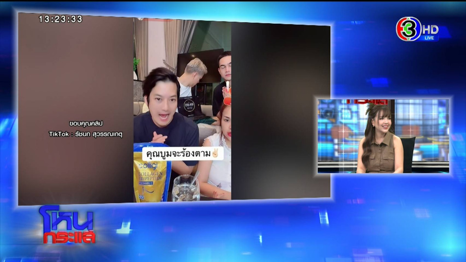 รายการ โหนกระแส วันที่ 13 ต.ค. ดำเนินรายการโดย “หนุ่ม กรรชัย กำเนิดพลอย” ผลิตในนามบริษัท ดีคืนดีวัน จำกัด ออกอากาศทุกวันจันทร์-ศุกร์ เวลา 12.35 น. ทางช่อง 3 กดหมาย เลข 33 สัมภาษณ์ “เจนนี่ ได้หมดถ้าสดชื่น” ผู้สร้างปรากฏการณ์ขายในรูปแบบใหม่ แค่ 2 วัน ฟันไปแล้ว 100 ล้าน พร้อมเคลียร์สารพัดดราม่า