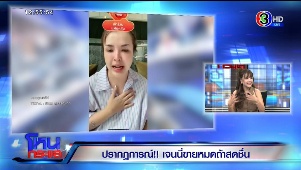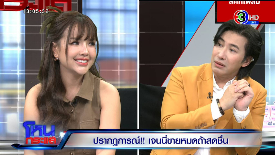รายการ โหนกระแส วันที่ 13 ต.ค. ดำเนินรายการโดย “หนุ่ม กรรชัย กำเนิดพลอย” ผลิตในนามบริษัท ดีคืนดีวัน จำกัด ออกอากาศทุกวันจันทร์-ศุกร์ เวลา 12.35 น. ทางช่อง 3 กดหมาย เลข 33 สัมภาษณ์ “เจนนี่ ได้หมดถ้าสดชื่น” ผู้สร้างปรากฏการณ์ขายในรูปแบบใหม่ แค่ 2 วัน ฟันไปแล้ว 100 ล้าน พร้อมเคลียร์สารพัดดราม่า โดยบางช่วงบางตอน พิธีกร หนุ่ม กรรชัย ถาม เจนนี้ ได้หมดถ้าสดชื่น ว่า...