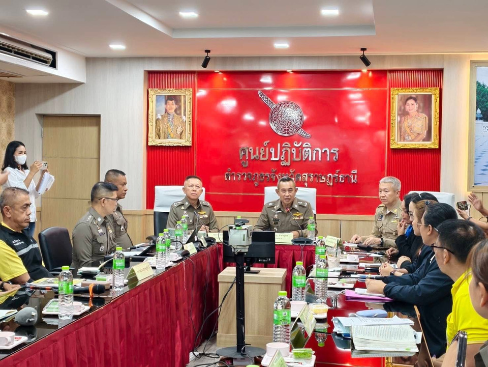 วันที่ 14 ต.ค.68 ที่กองบังคับการตำรวจภูธรจังหวัดสุราษฎร์ธานี พล.ต.ต.ศรัญญู ชำนาญราช รองผู้บัญชาการตำรวจภูธรภาค 8 และ พล.ต.ต.สุวัฒน์ สุขศรี ผู้บังคับการตำรวจภูธรจังหวัดสุราษฎร์ธานี ได้ประชุมร่วมกับคณะทำงานหลายหน่วยงานที่เกี่ยวข้อง พร้อมด้วย นายบันดาล สถิรชวาล รองผู้ว่าราชการจังหวัดสุราษฎร์ธานี ซึ่งได้รับมอบหมายภารกิจนี้จากผู้ว่าราชการจังหวัดสุราษฎร์ธานีให้เป็นผู้รับผิดชอบดำเนินการ เพื่อวางแผนการตรวจสอบและเข้าปฏิบัติการกับกลุ่มเป้าหมายชาวต่างชาติที่อาจเข้าข่ายกระทำผิดกฎหมาย