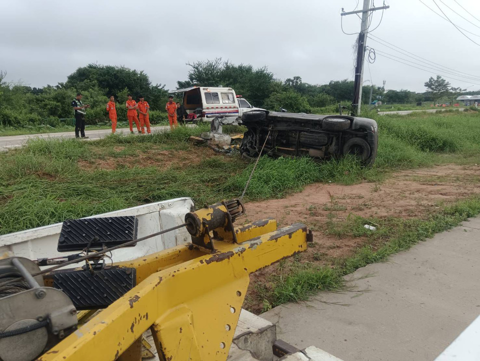 ที่เกิดเหตุอยู่ช่วงหลักกิโลเมตรที่ 147 +388 ด้านขาเข้า อ.เมือง นครราชสีมา พบรถยนต์ยี่ห้อมิตซู สีน้ำตาล ทะเบียนชลบุรี พุ่งชนเสาไฟฟ้าร่องน้ำกลางถนน สภาพหงายล้อชี้ฟ้าพังยับเยิน ส่วนผู้ขับขี่ ทราบชื่อคือ ร.ท.ธราธร (ขอสงวนนามสกุล) อายุ 27 ปี อยู่หมู่ 1 ต.พรหมณี อ.เมืองนครนายก จ.นครนายก ได้รับบาดเจ็บเป็นแผลฟกช้ำเล็กน้อย เจ้าหน้าที่ได้นำตัวส่งโรงพยาบาลสีคิ้ว เพื่อรักษาและสังเกตอาการต่อไป