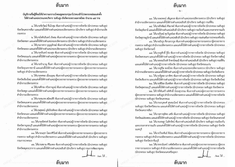 วันที่ 14 ตุลาคม 2568 ผู้สื่อข่าวรายงานว่า ที่ประชุมคณะรัฐมนตรี (ครม.) มีมติแต่งตั้ง ให้ดำรงตำแหน่งประเภทบริหารระดับสูง สังกัดกระทรวงมหาดไทย จำนวน 45 ราย ดังนี้