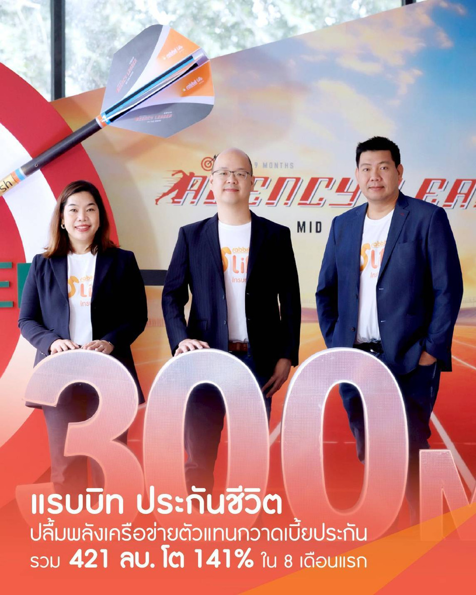 บริษัท แรบบิท ประกันชีวิต จำกัด (มหาชน) หรือ Rabbit Life บริษัทในเครือบริษัท บีทีเอส กรุ๊ป โฮลดิ้งส์ จำกัด (มหาชน) เผยความสำเร็จของช่องทางเอเจนซี หลังโชว์ผลงานโดดเด่นตลอด 8 เดือนแรกท่ามกลางความท้าทายในปี 2568 ด้วยเบี้ยประกันรวมเติบโตมูลค่า 421 ล้านบาทหรือคิดเป็น 141% และเบี้ยประกันปีแรก (FYP) เพิ่มขึ้น 136% พร้อมเดินหน้าต่อยอดศักยภาพผ่านกลยุทธ์ “Agent Transformation” เพื่อยกระดับบทบาทตัวแทนสู่ พาร์ทเนอร์ด้านการวางแผนชีวิต ผ่าน 4 แกนหลัก ได้แก่ การพัฒนาคุณภาพตัวแทน (From Agent to Professional Advisor), การเสริมพลังเครือข่าย (Empowering People, Strengthening Network), การขยายเครือข่ายตัวแทน (Expanding Reach Nationwide) และการพัฒนาผลิตภัณฑ์ที่ตอบโจทย์ (Innovating Customer-Centric Products) นอกจากนี้เตรียมเร่งเครื่องโค้งสุดท้ายของปีด้วยการเปิดแผนผลิตภัณฑ์ลดหย่อนภาษี ควบคู่กับการอัปเกรดระบบ E-Application ให้รองรับการใช้งานได้สะดวก รวดเร็ว และตอบโจทย์พฤติกรรมผู้บริโภคยุคดิจิทัล โดยตั้งเป้าเบี้ยประกันรวมเติบโตเพิ่มอีก 20% ภายในสิ้นปี 2568