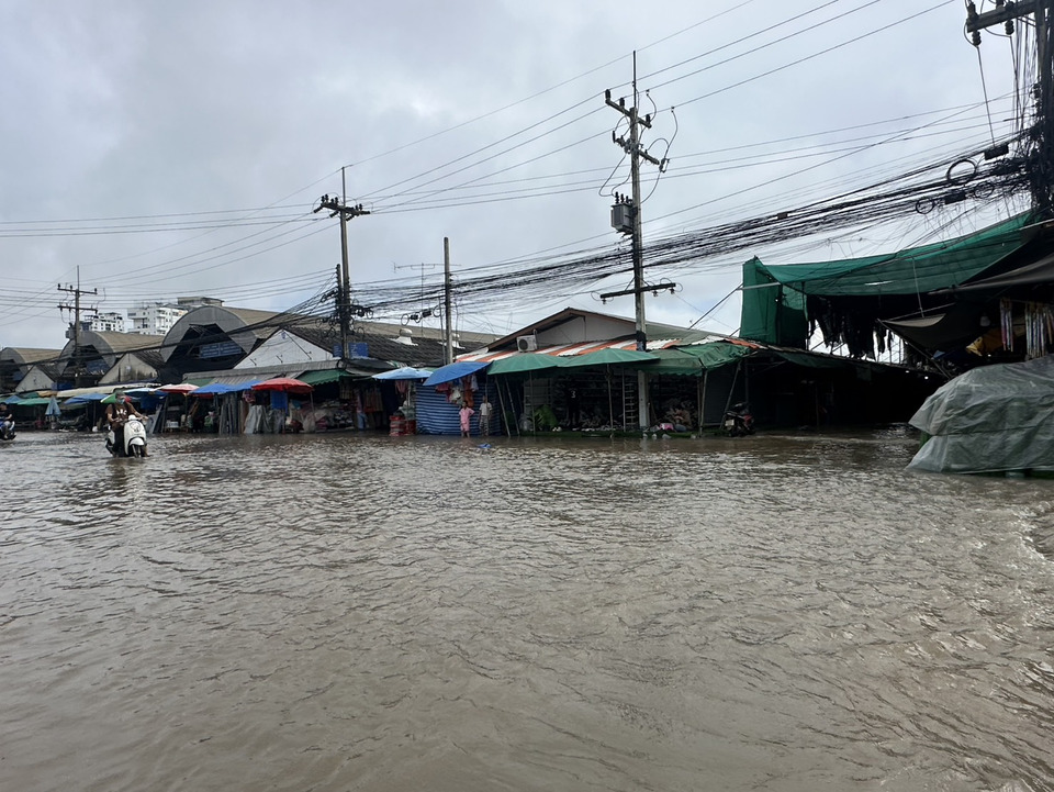 จากนั้นมวลน้ำที่ล้นออกจากถนนศรีเพ็ญได้ไหลเข้าท่วมถนนภายในในตลาดโรงเกลือ หรือตลาด อบจ.ซึ่งเป็นพื้นที่เศรษฐกิจ ทำให้พ่อค้า แม่ค้าชาวกัมพูชาที่เปิดร้าค้าขายสินค้าในตลาดโรงเกลือ ต้องรีบขนสินค้าขึ้นที่สูงกันอย่างทุลักทุเล บางรายต้องนำสินค้าใส่รถซาเล้งเพื่อขนสินค้าออกไปไว้ที่ปลอดภัย โดยมี จนท.อบจ.สระแก้ว ออกมาช่วยเหลือพ่อค้า แม่ค้าในตลาดโรงเกลือ ขนสิ่งของขึ้นที่สูงและจัดการจราจรบนถนนศรีเพ็ญ บริเวณทางเข้าตลาดโรงเกลือ และตลาดศูนย์การค้าอินจีน ที่มีน้ำท่วมขังสูง