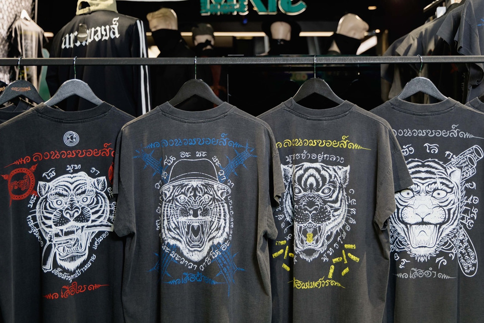 ครั้งนี้มาร่วมคอลแลปส์กับภาพยนตร์ ‘เสือ (4Tigers)’ โดย สหมงคลฟิล์ม นับเป็นการผสานพลังเชื่อมโลกสตรีทแฟชั่นเข้ากับพลังศรัทธาแบบไทย 4 ยันต์ 4 อาคม ถ่ายทอดผ่านเส้นศิลปะบนเสื้อผ้า โดยแต่ละแบบสะท้อนเอกลักษณ์และพลังแห่งความเป็นตัวตนในแบบฉบับไทยออริจินอล ของทั้ง “4 เสือ” ได้อย่างชัดเจน ไม่ว่าจะเป็น เสือฝ้าย (แสดงโดย เวียร์ ศุกลวัฒน์) จอมพลฝ้าย ผู้นำเหล่าเสือ เป็นสัญลักษณ์ของความกล้าหาญ ดุดัน และไม่เคยยอมแพ้ต่ออำนาจ เสื้อรุ่นนี้สะท้อนพลังของผู้นำที่ยืนหยัดเพื่อสิ่งที่เชื่อ, เสือมเหศวร (แสดงโดย มาริโอ้ เมาเร่อ) เสือหนุ่มเปี่ยมเสน่ห์และไหวพริบ แฝงด้วยความสุขุมแต่เฉียบคม เสื้อรุ่นนี้คือภาพแทนของความเท่ที่ไม่จำเป็นต้องเอ่ยคำพูด, เสือใบ (แสดงโดย เป้ อารักษ์) เสือเจ้าเสน่ห์ผู้รักอิสระและพร้อมท้าชนทุกกฎเกณฑ์ เสื้อรุ่นนี้คือพลังของการเป็นตัวของตัวเองในแบบที่ไม่มีใครหยุดยั้งได้, เสือดำ (แสดงโดย โตโน่ ภาคิน) เสือผู้แข็งแกร่ง ลึกลับ และน่าเกรงขาม เสื้อรุ่นนี้สะท้อนด้านมืดที่ทรงพลังและพร้อมปลุกความเป็นนักสู้ในตัวคุณ